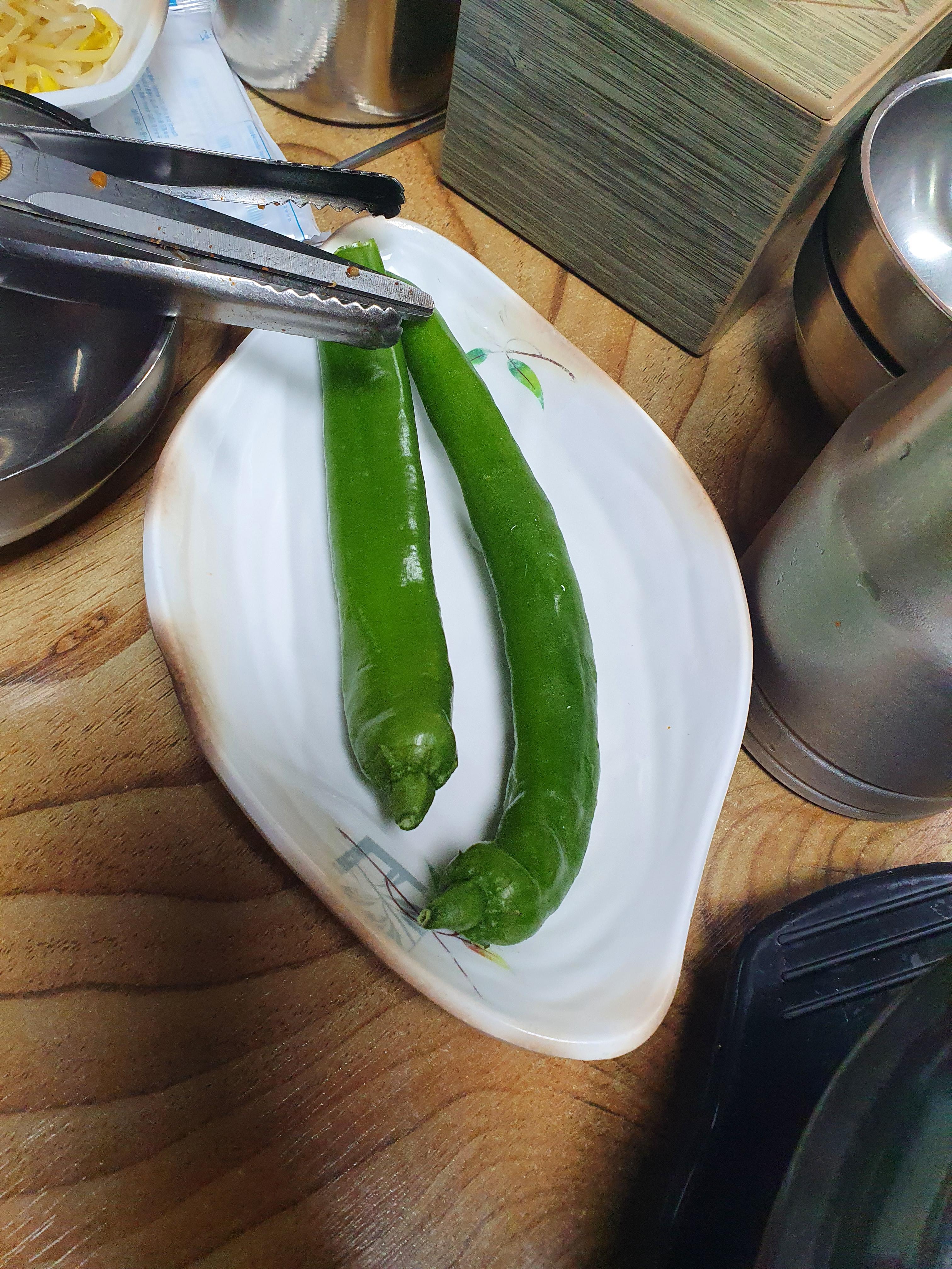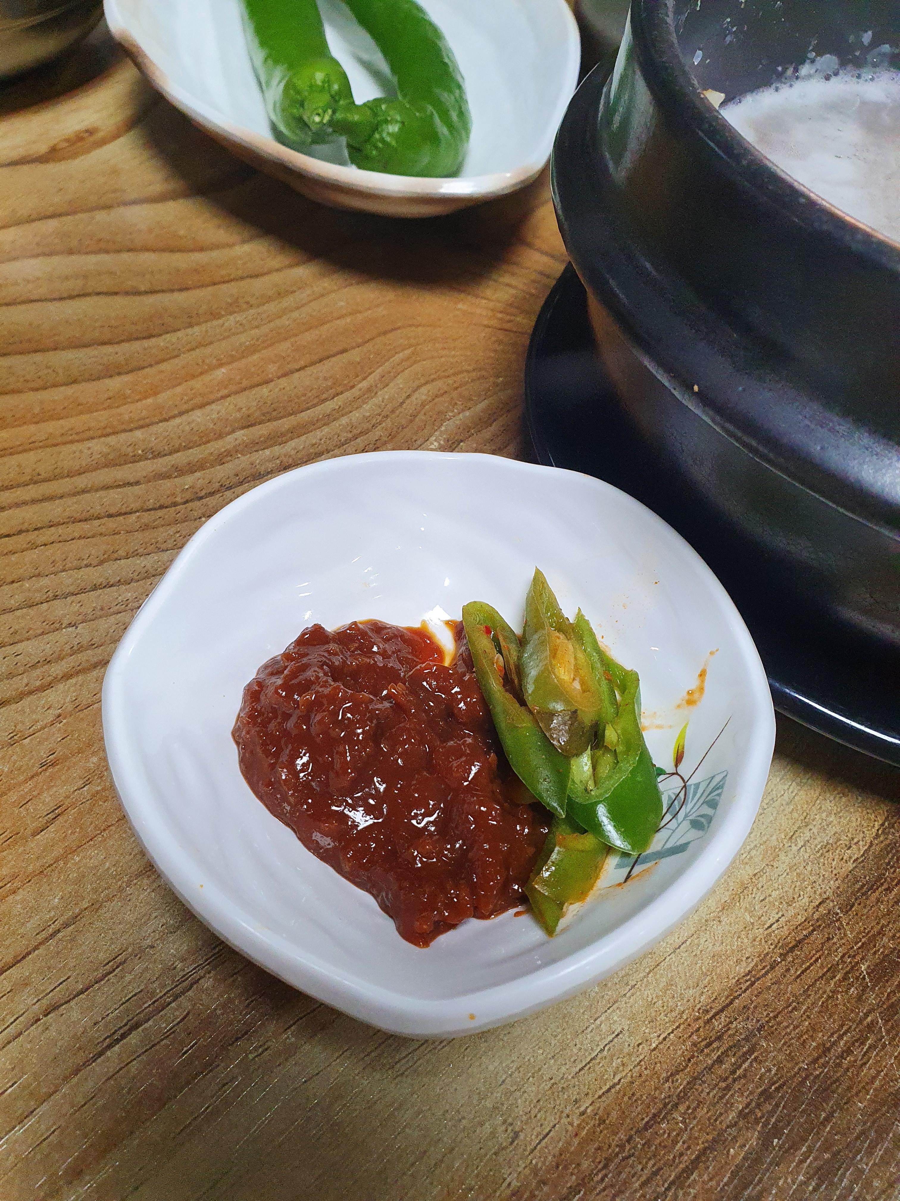 갈비김치찌개가 나오고 위에 올라간 고추는 제거하고,