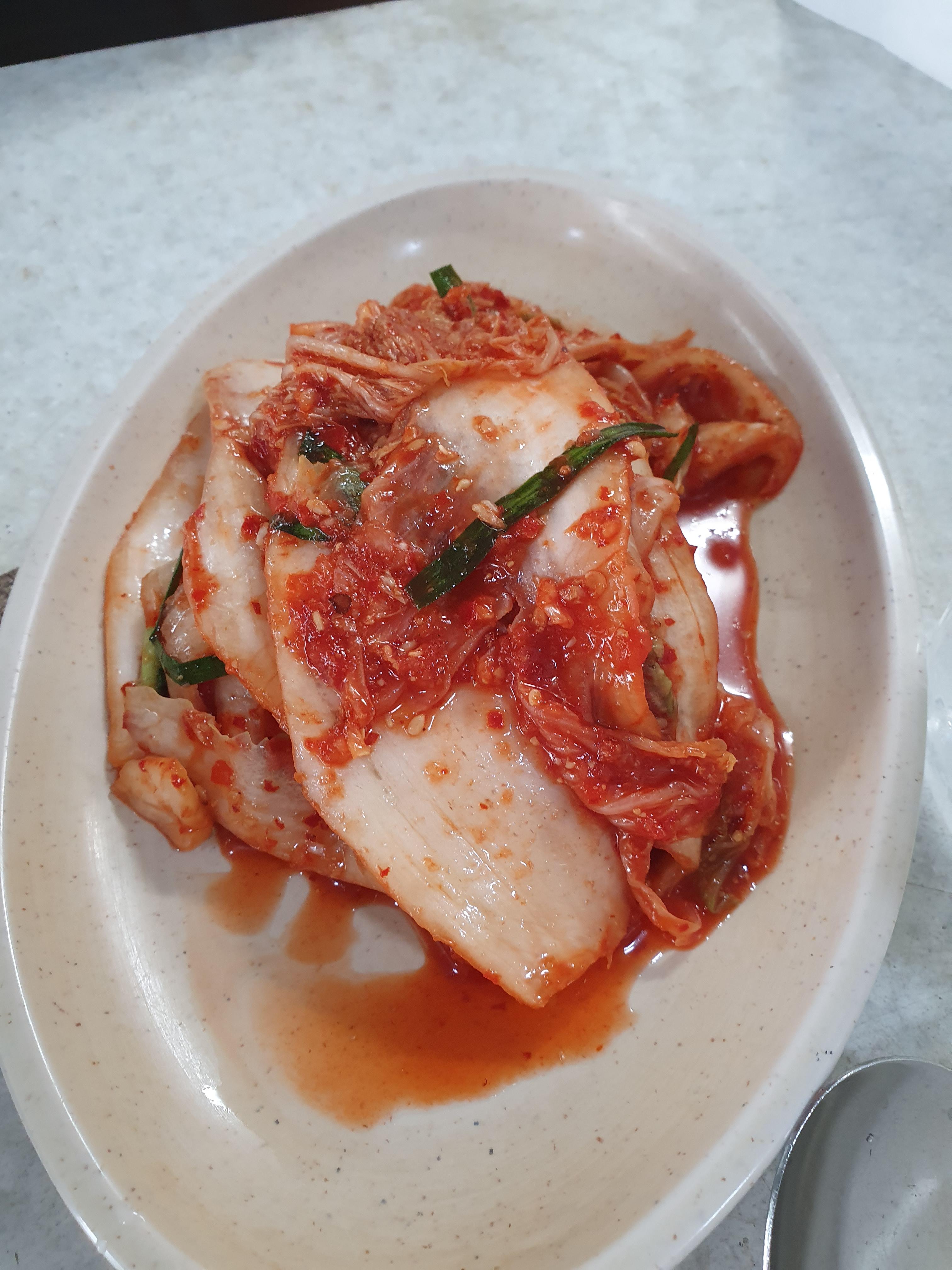 주문을 하고 겉절이가 나오는데... 여기만의 특유향이 느껴지는 맛있는 배추 겉절이예요.