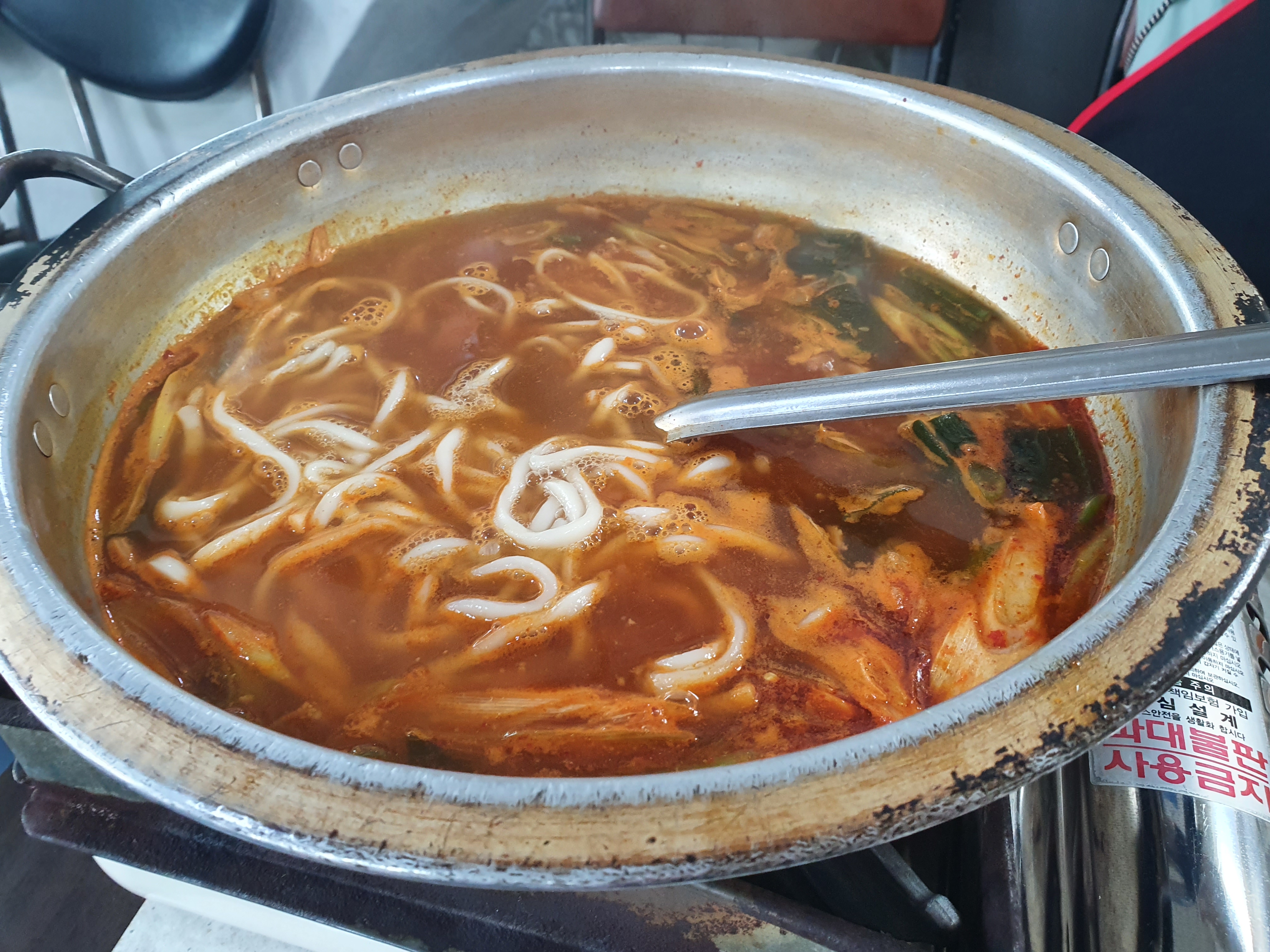 신나게 두부를 집어서 먹고, 먹으면서 사리를 미리 주문을 합니다. 칼국수 사리를 넣는데.. 익힌 칼국수 사리를 넣기 때문에 미리 말을 해놔야합니다.