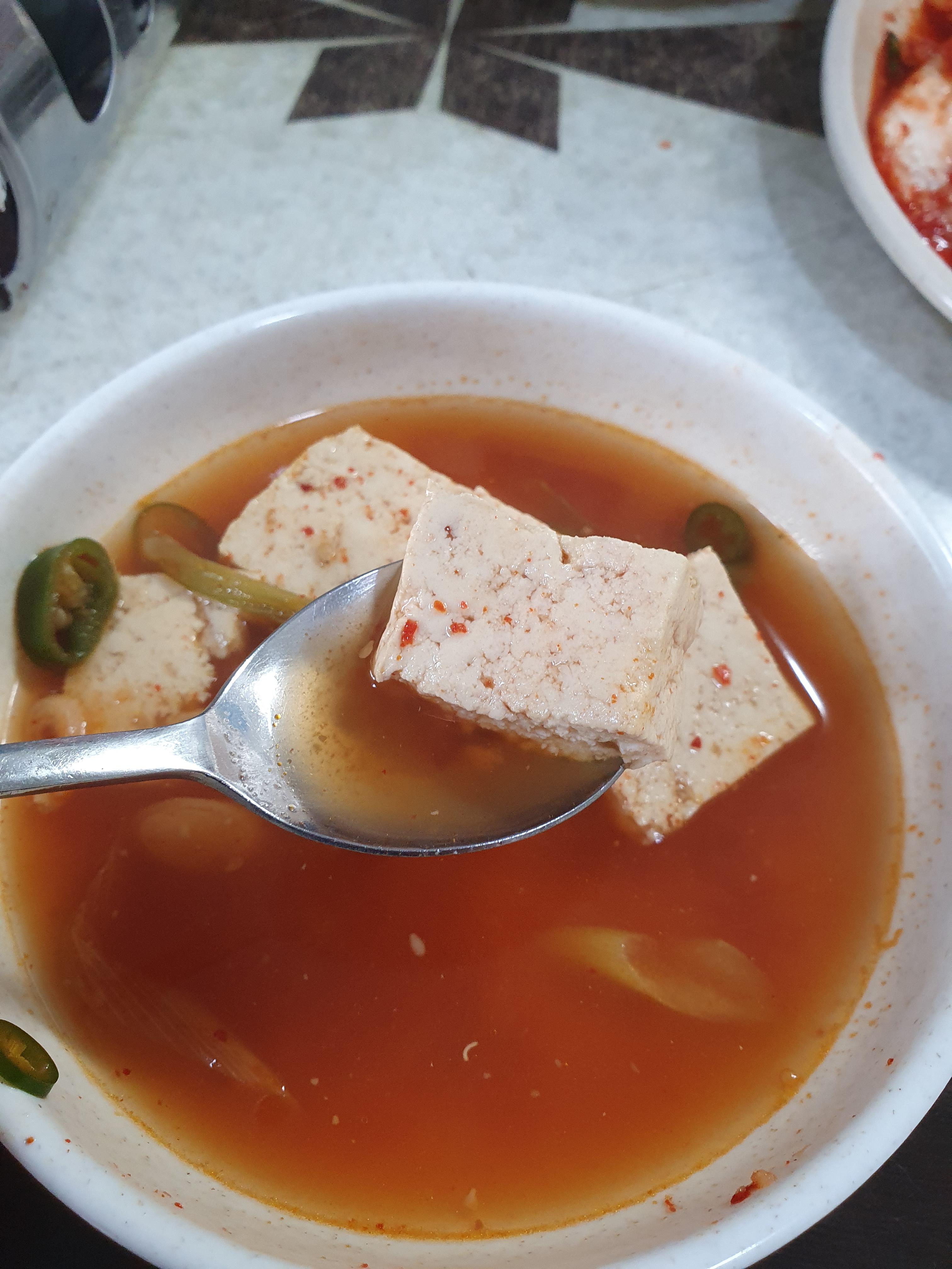 밥이 좀 심심하면 두부탕 국물과 함께 먹으면 됩니다.