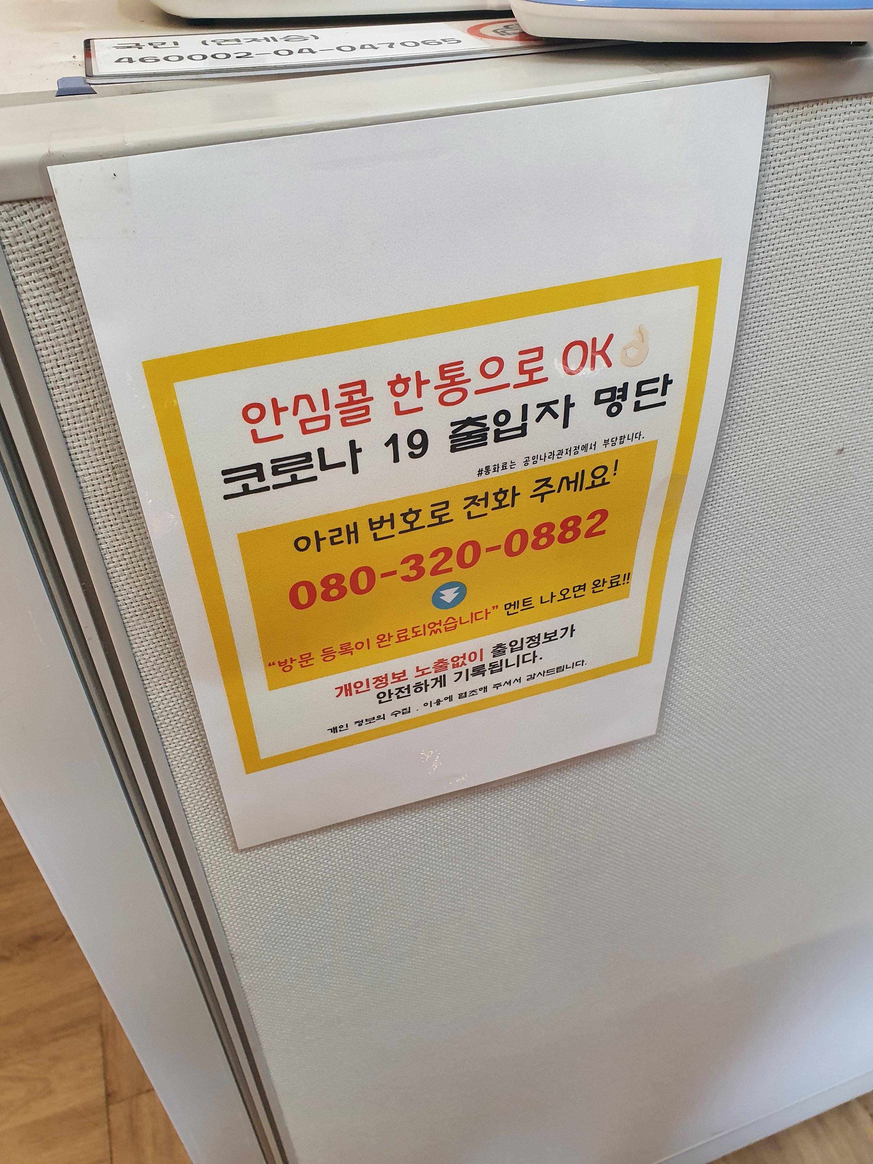 휴게실을 이용하면 출입자명단 전화를 해야하니 잊지말고